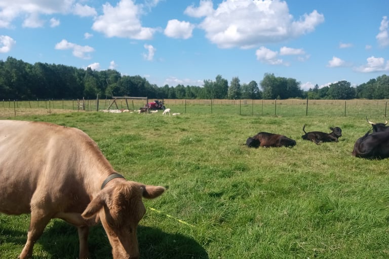 We raise and learn from heritage breed chickens, sheep, cows, and pigs, developing relationships as they adapt to the land.