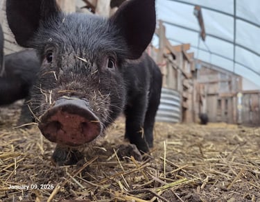 On January 17, our boar Onion was joined by sows Ladelaide and Lavender. Hopefully, there will be hoglings come May. Photo credit to Murph.